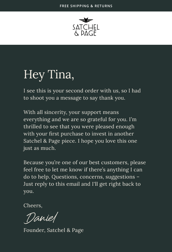 The Satchel & Page email marketing examples below should give you a strong foundation to build your own strategy:
