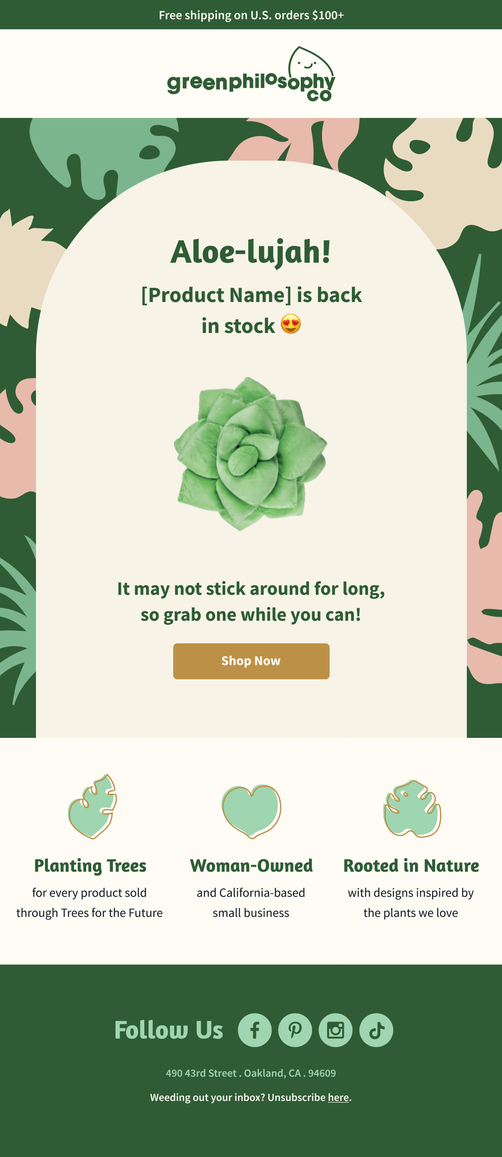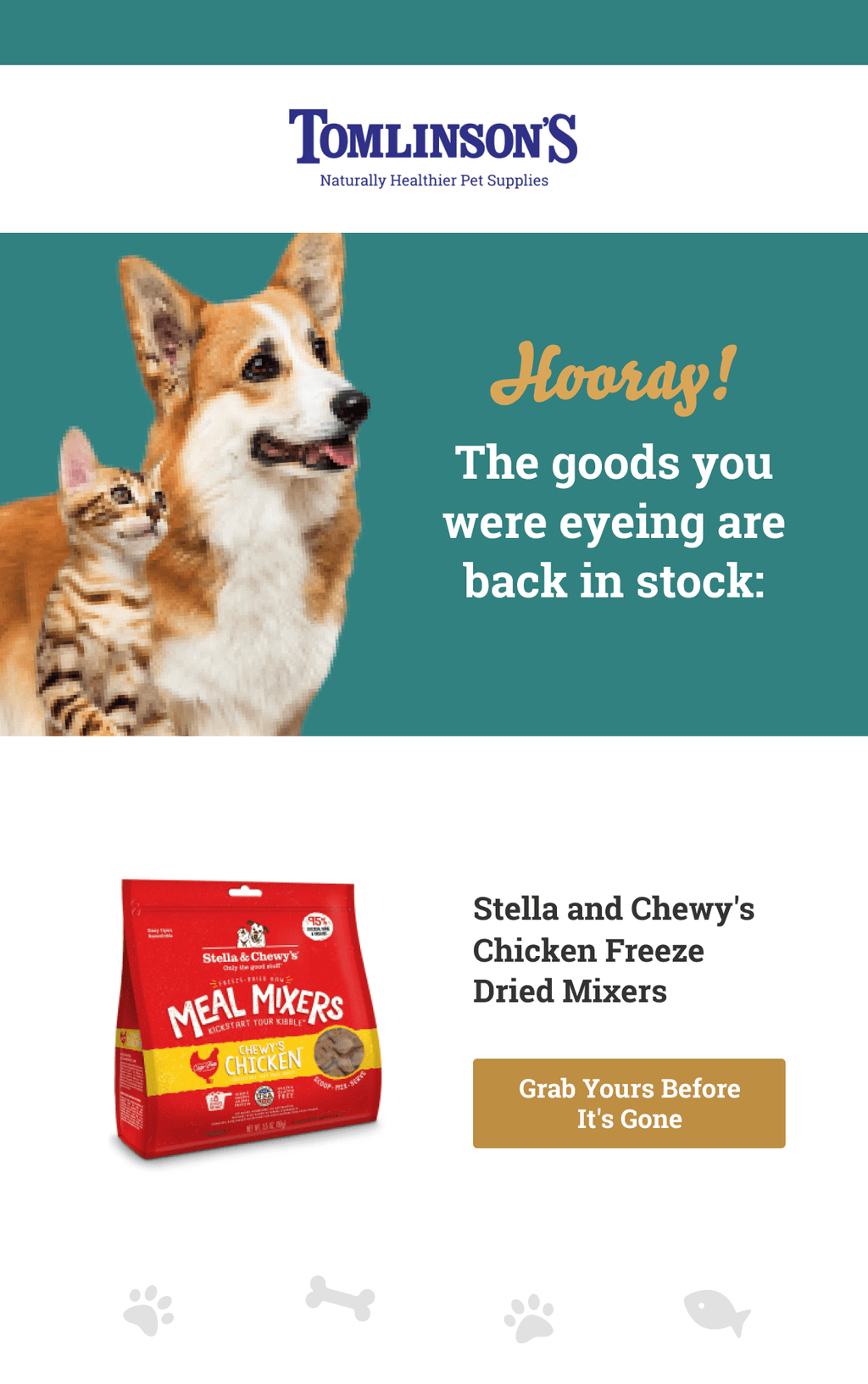 To tackle this, set up a “back in stock” notification to customers who are interested in the product. This notification should go out immediately once the item is back in stock.