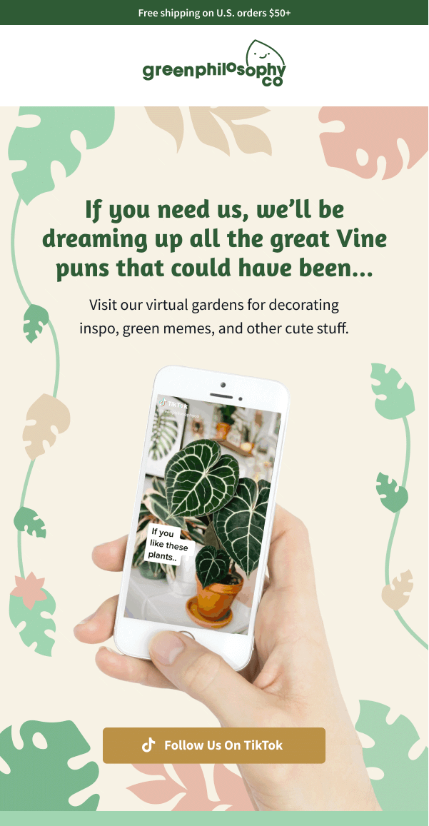 “Have fun with your email design and branding because this is your chance to show the viewer your brand's true personality. Stand out in a sea of competitor emails by creating some bold, unique designs. Adding motion to an email with eye-catching GIFs can also help grab the viewer’s attention."