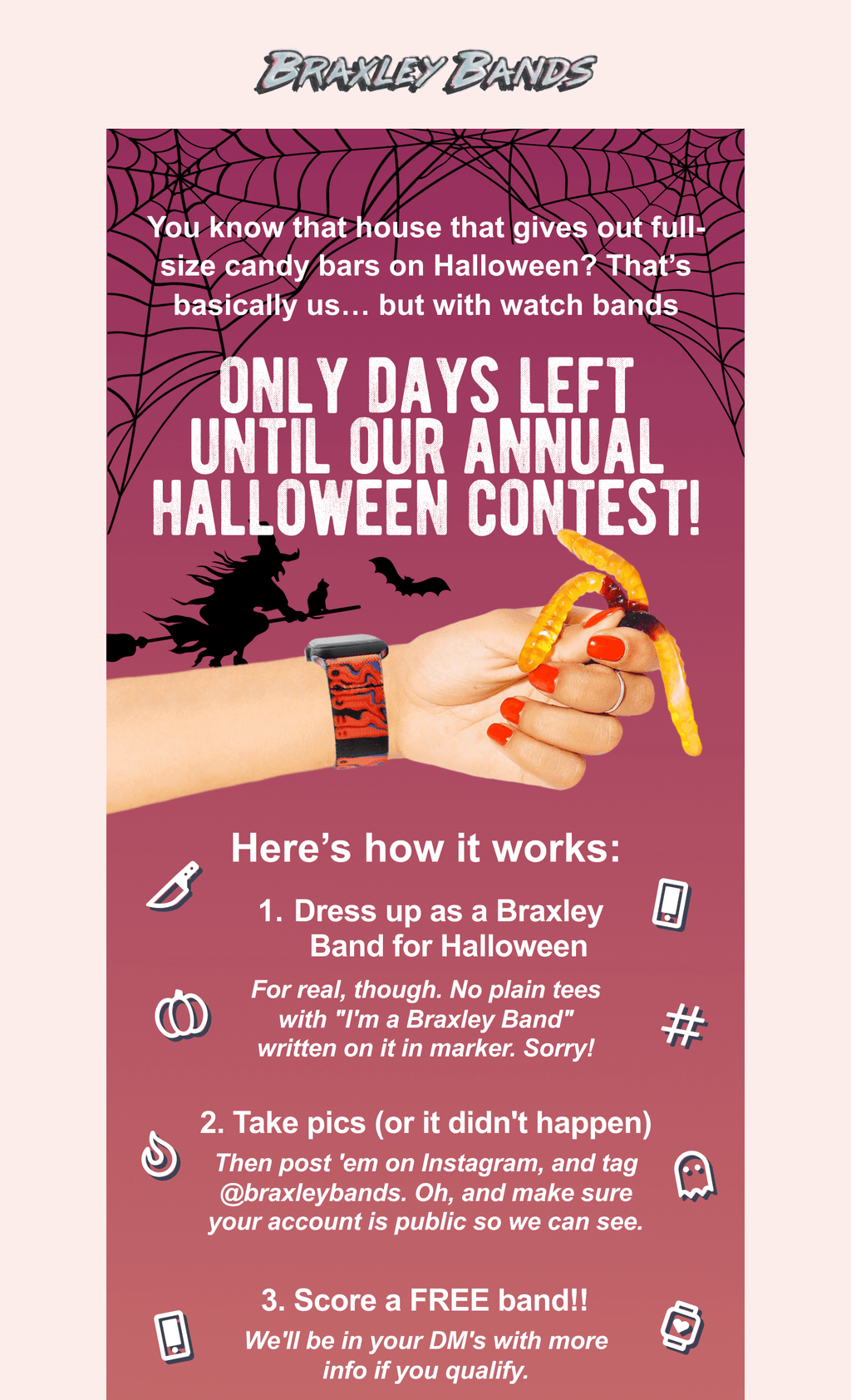 These emails should be fun, featuring great imagery and engaging content. Check out the examples below.