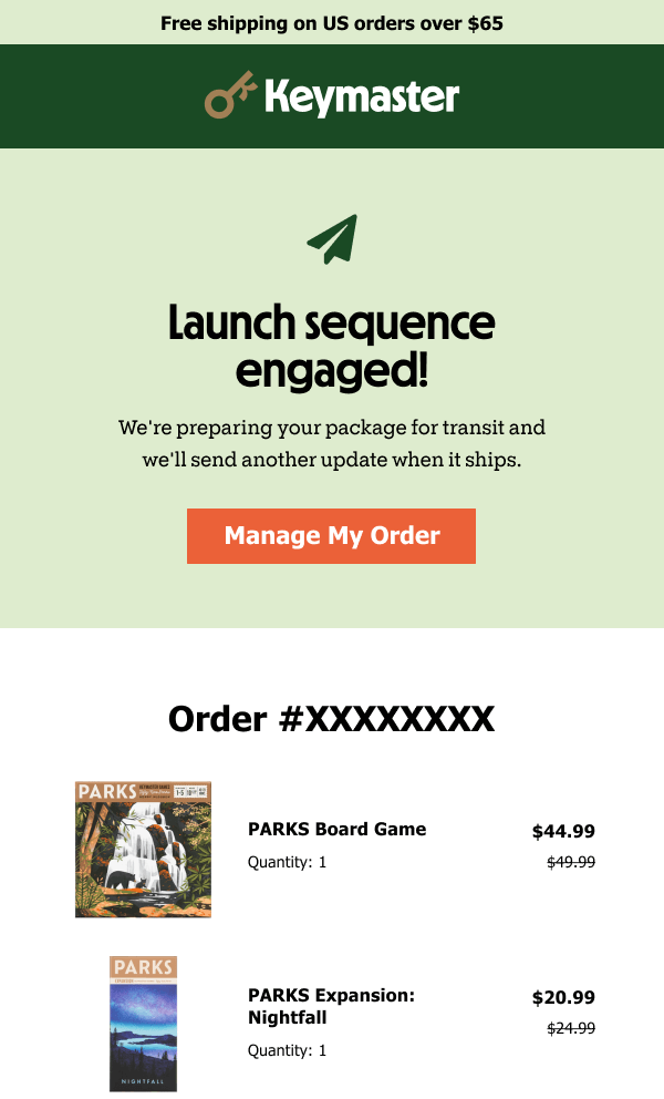 Transactional emails are triggered based on, well, a transaction. They’re how brands communicate updates to customers who made a purchase.