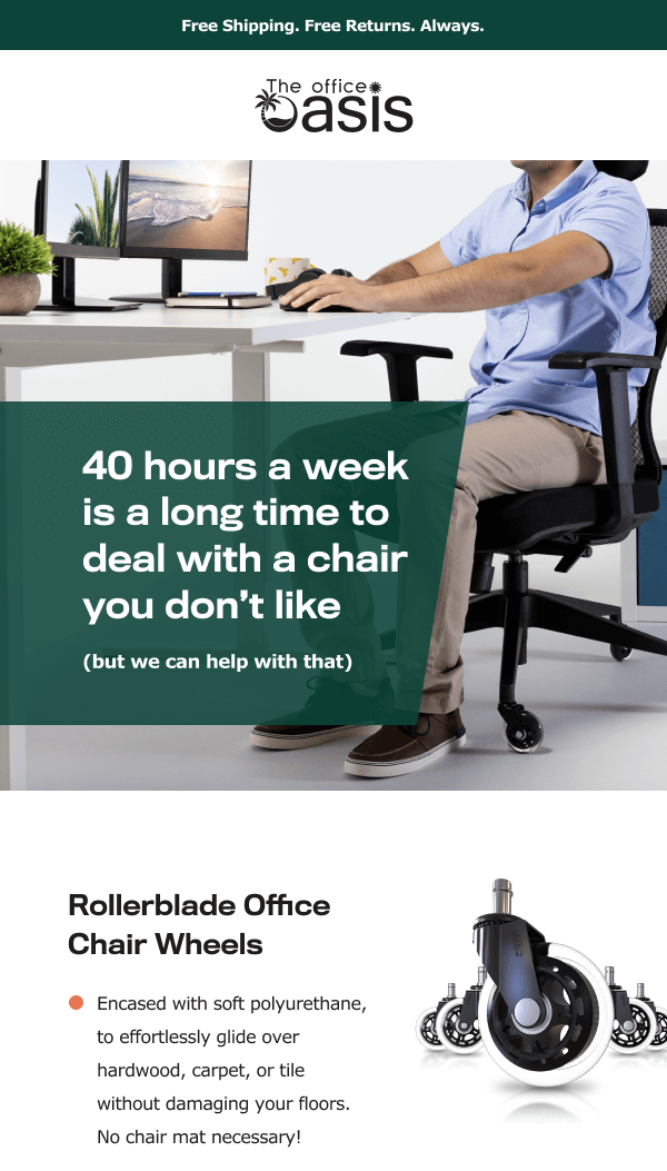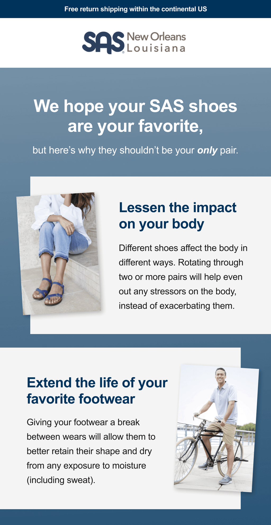 Regardless of the email flow (welcome, post-purchase, browse abandonment, win-back…) you should always ask yourself where your reader stands at that moment in regards to your product and what information will be the most helpful to help them solve their problem.
