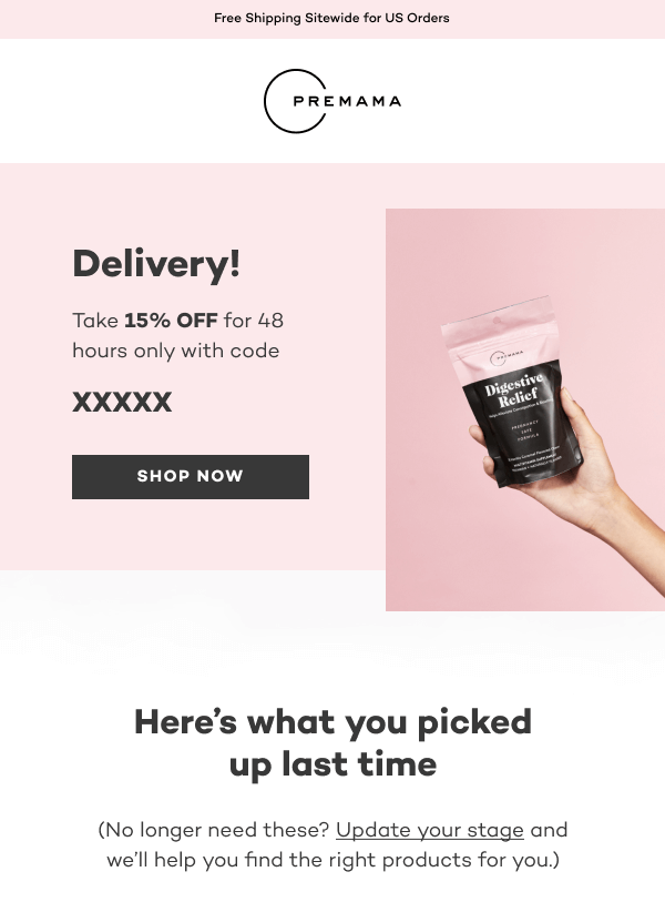 These emails should share interesting information, showcase new products or current bestsellers, highlight product benefits, or offer a special discount. But if you want to take these emails to the next level then you can segment them based on the user’s past purchases. More relevant offers will always lead to better engagement.