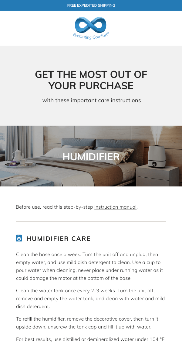 Similar to FAQ emails, educate customers on the best ways to use your products. This could include how to clean your products, how to apply the product to your skin, the best time to use your product, or how to care for your products to keep them in the best condition.