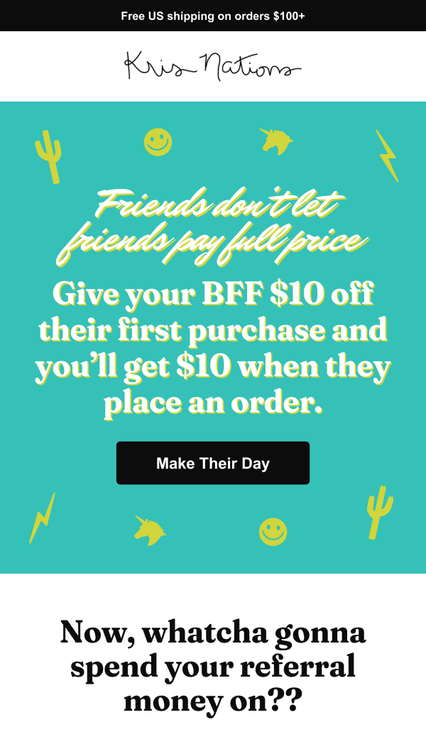 Or if you share referral benefits with a new customer excited about their first purchase, they're likely to help promote your brand through their network. So make sure to mention these at judicious times within your flows.