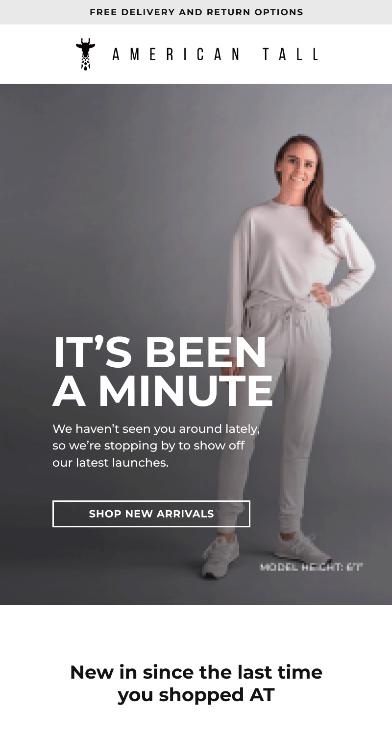 The tiniest bit of personalization can go a long way to improve your engagement rates on email. In fact, after asking customers via a pop-up if they were interested in Men and/or Women's collections, American Tall was able to increase its welcome flow conversion rate by 2X (it now converts 11.06% of customers).
