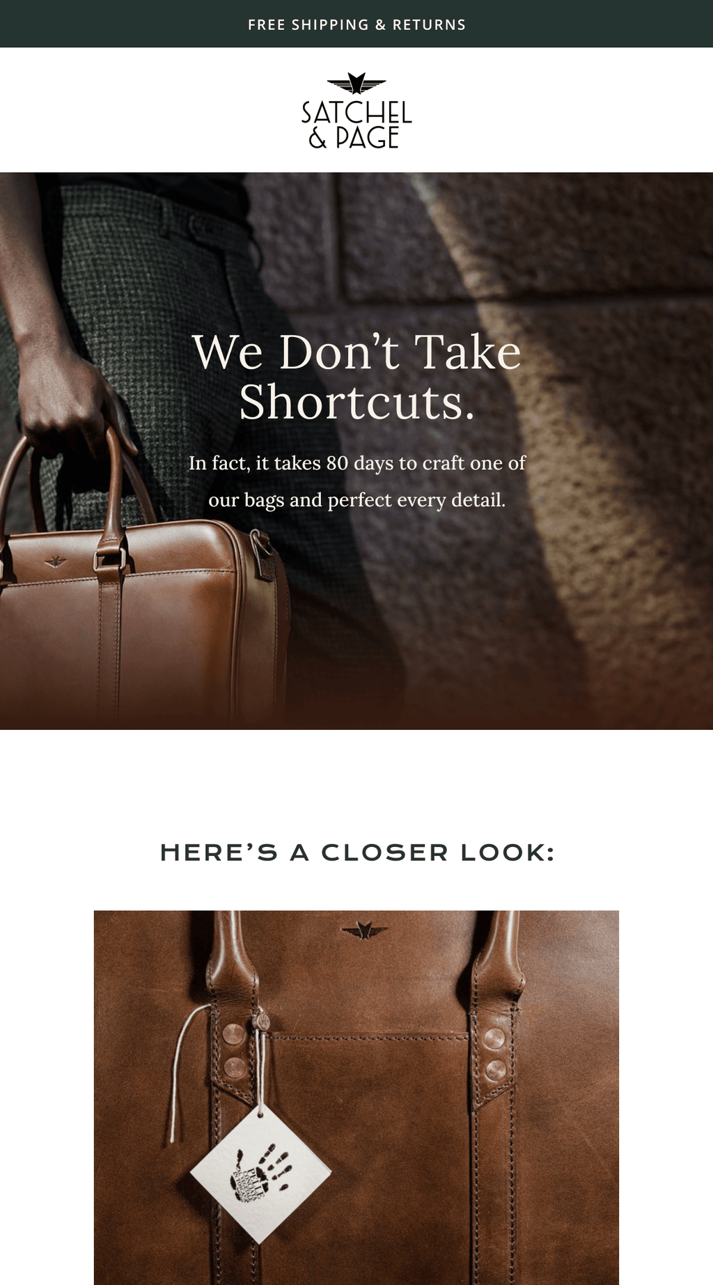 For the other emails in your abandoned cart flow, highlight your store and product values to connect with the customer, and don’t distract the user with any other links. The goal is to get them to convert by linking them back to their cart.