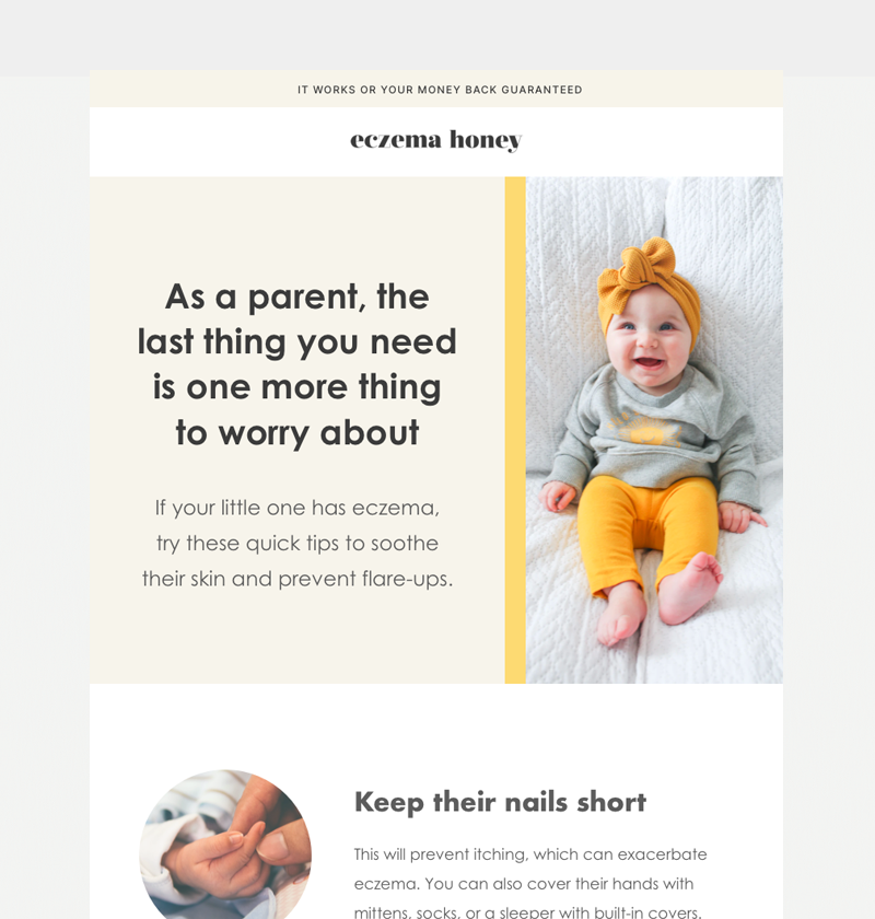 Here, Eczema Honey boasts about their upcoming holiday offer with this email: