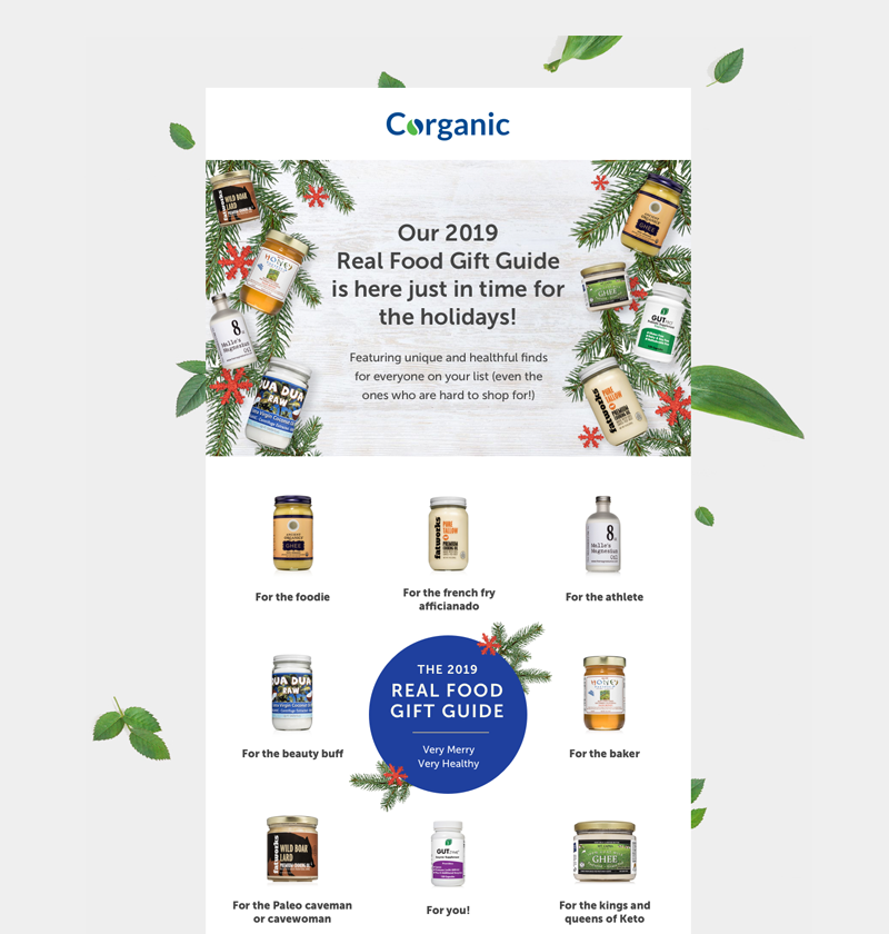 Here's how Corganic and Victare both provide specific holiday gift ideas for their subscribers:
